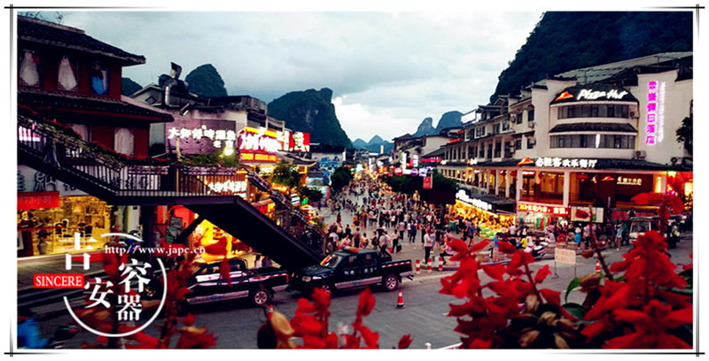 第二批的同事則由于天氣原因河水漲潮沒有觀賞到壯觀的劉三姐演出,改為自由活動游覽陽朔具三百年歷史、名登“世界旅游大典”充滿外國醉人情調(diào)之【陽朔西街】。在 “不逛洋人街,等于沒到陽朔來”體驗一下西街酒吧的小資情調(diào):“丁丁” “原始人”的熱情,“陽朔第一燒”的烤雞,“四?!焙汀盁嵛钑钡目褚耙魳?,“沒有飯店” 的溫馨氛圍。新起的酒吧也很不錯“馬可波羅”“陌陌”“菲林”感受陽朔另一面的激情。