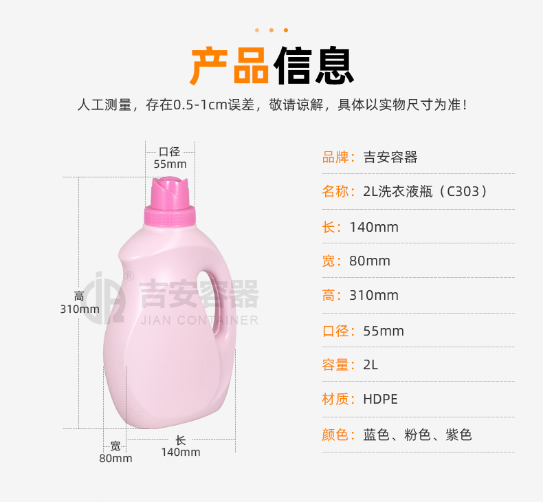 東莞市吉安包裝容器有限公司創(chuàng)立于2000年8月1日,是中國知名品牌企業(yè)。已通過ISO 9001質量管理體系資質認證,加入了中國中空協(xié)會,并獲得《中國知名品牌》,《國家標準合格產(chǎn)品》,《全國重合同守信用AAA級企業(yè)》,《質量.服務.誠信AAA企業(yè)》等榮譽稱號。根據(jù)材質的不同,我們的產(chǎn)品分為塑料容器、鐵質容器、鋁材容器、玻璃容器、紙質容器等五大類。按產(chǎn)品的名稱分為塑料桶、塑料瓶、包裝桶、涂料桶、機油桶、油脂桶、化工罐、膠水瓶、鐵桶、鐵罐、鋁瓶、鋁罐、阻隔瓶、高阻隔瓶等,容量從3ML至1000L多種規(guī)格,多種款式。適合包裝的產(chǎn)品包括:化學試劑、化工原料、化工助劑、飼料添加劑、油墨、油漆、樹脂農(nóng)藥、日用化學品、聚氨脂、膠粘劑,廣泛應用于化工、建筑、食品、醫(yī)療、生物等各領域。