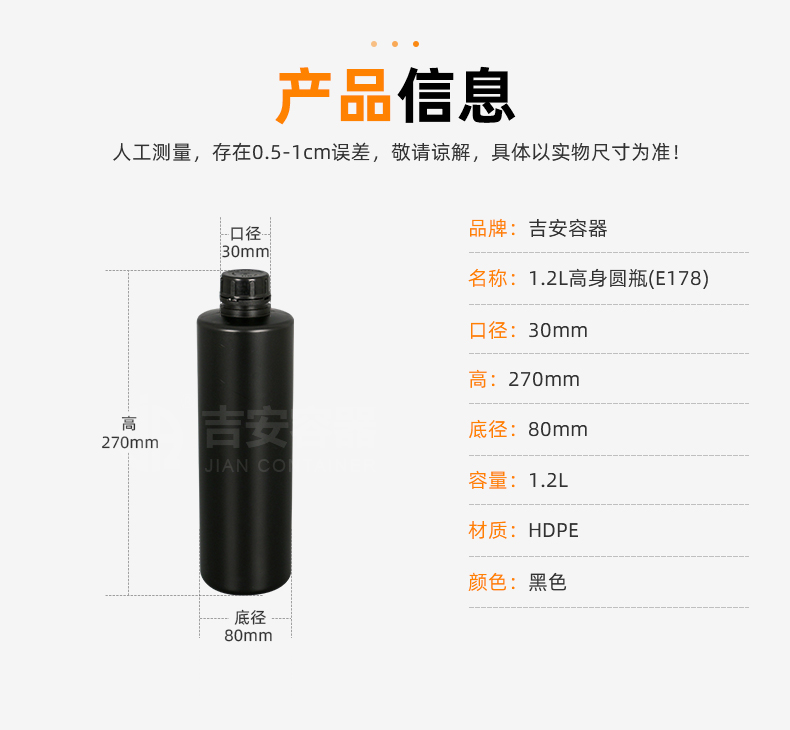 東莞市吉安包裝容器有限公司創(chuàng)立于2000年8月1日,是中國(guó)知名品牌企業(yè)。已通過(guò)ISO 9001質(zhì)量管理體系資質(zhì)認(rèn)證,加入了中國(guó)中空協(xié)會(huì),并獲得《中國(guó)知名品牌》,《國(guó)家標(biāo)準(zhǔn)合格產(chǎn)品》,《全國(guó)重合同守信用AAA級(jí)企業(yè)》,《質(zhì)量.服務(wù).誠(chéng)信AAA企業(yè)》等榮譽(yù)稱號(hào)。根據(jù)材質(zhì)的不同,我們的產(chǎn)品分為塑料容器、鐵質(zhì)容器、鋁材容器、玻璃容器、紙質(zhì)容器等五大類。按產(chǎn)品的名稱分為塑料桶、塑料瓶、包裝桶、涂料桶、機(jī)油桶、油脂桶、化工罐、膠水瓶、鐵桶、鐵罐、鋁瓶、鋁罐、阻隔瓶、高阻隔瓶等,容量從3ML至1000L多種規(guī)格,多種款式。適合包裝的產(chǎn)品包括:化學(xué)試劑、化工原料、化工助劑、飼料添加劑、油墨、油漆、樹(shù)脂農(nóng)藥、日用化學(xué)品、聚氨脂、膠粘劑,廣泛應(yīng)用于化工、建筑、食品、醫(yī)療、生物等各領(lǐng)域。