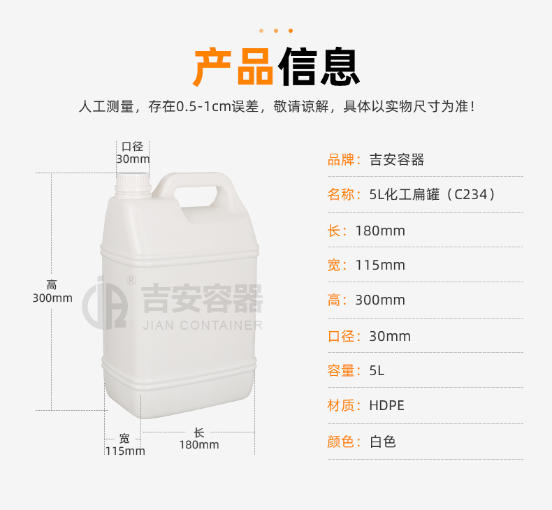 東莞市吉安包裝容器有限公司創(chuàng)立于2000年8月1日,是中國知名品牌企業(yè)。已通過ISO 9001質(zhì)量管理體系資質(zhì)認證,加入了中國中空協(xié)會,并獲得《中國知名品牌》,《國家標準合格產(chǎn)品》,《全國重合同守信用AAA級企業(yè)》,《質(zhì)量.服務.誠信AAA企業(yè)》等榮譽稱號。根據(jù)材質(zhì)的不同,我們的產(chǎn)品分為塑料容器、鐵質(zhì)容器、鋁材容器、玻璃容器、紙質(zhì)容器等五大類。按產(chǎn)品的名稱分為塑料桶、塑料瓶、包裝桶、涂料桶、機油桶、油脂桶、化工罐、膠水瓶、鐵桶、鐵罐、鋁瓶、鋁罐、阻隔瓶、高阻隔瓶等,容量從3ML至1000L多種規(guī)格,多種款式。適合包裝的產(chǎn)品包括:化學試劑、化工原料、化工助劑、飼料添加劑、油墨、油漆、樹脂農(nóng)藥、日用化學品、聚氨脂、膠粘劑,廣泛應用于化工、建筑、食品、醫(yī)療、生物等各領(lǐng)域。