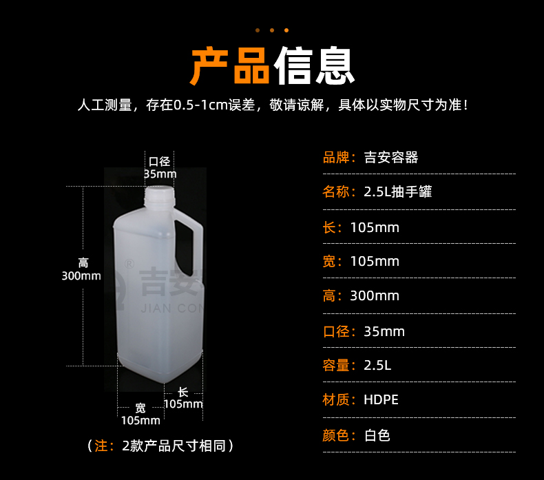 容量:2500ml | 材質(zhì):罐蓋-PP,罐身-HDPE |