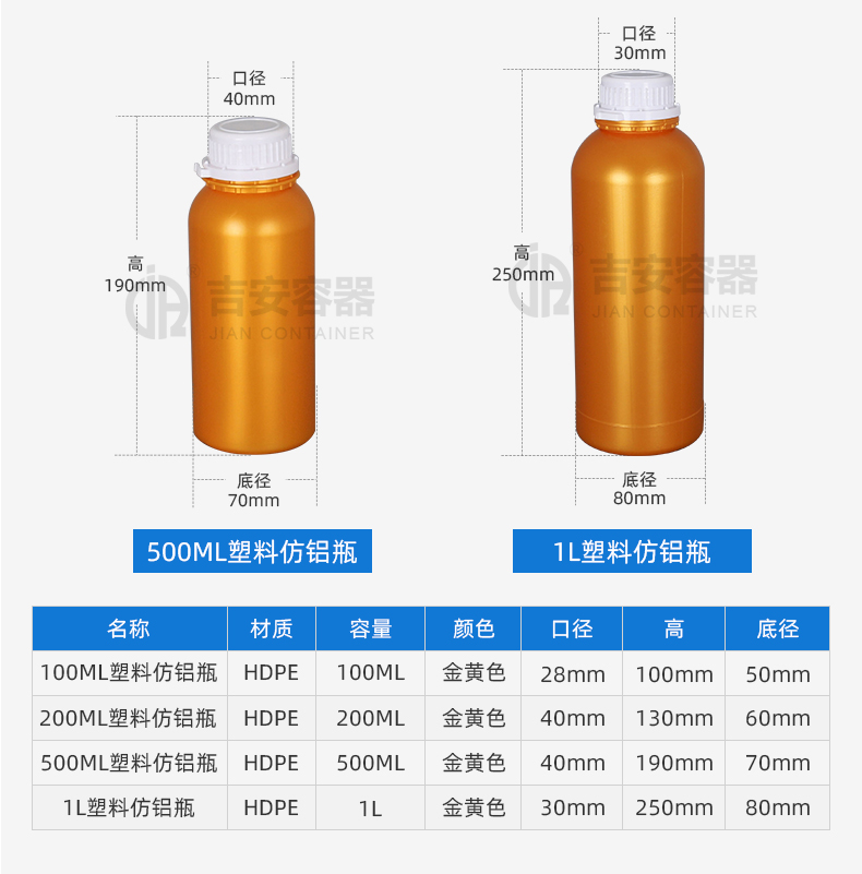 東莞市吉安包裝容器有限公司創(chuàng)立于2000年8月1日,是中國(guó)知名品牌企業(yè)。已通過(guò)ISO 9001質(zhì)量管理體系資質(zhì)認(rèn)證,加入了中國(guó)中空協(xié)會(huì),并獲得《中國(guó)知名品牌》,《國(guó)家標(biāo)準(zhǔn)合格產(chǎn)品》,《全國(guó)重合同守信用AAA級(jí)企業(yè)》,《質(zhì)量.服務(wù).誠(chéng)信AAA企業(yè)》等榮譽(yù)稱號(hào)。根據(jù)材質(zhì)的不同,我們的產(chǎn)品分為塑料容器、鐵質(zhì)容器、鋁材容器、玻璃容器、紙質(zhì)容器等五大類。按產(chǎn)品的名稱分為塑料桶、塑料瓶、包裝桶、涂料桶、機(jī)油桶、油脂桶、化工罐、膠水瓶、鐵桶、鐵罐、鋁瓶、鋁罐、阻隔瓶、高阻隔瓶等,容量從3ML至1000L多種規(guī)格,多種款式。適合包裝的產(chǎn)品包括:化學(xué)試劑、化工原料、化工助劑、飼料添加劑、油墨、油漆、樹(shù)脂農(nóng)藥、日用化學(xué)品、聚氨脂、膠粘劑,廣泛應(yīng)用于化工、建筑、食品、醫(yī)療、生物等各領(lǐng)域。