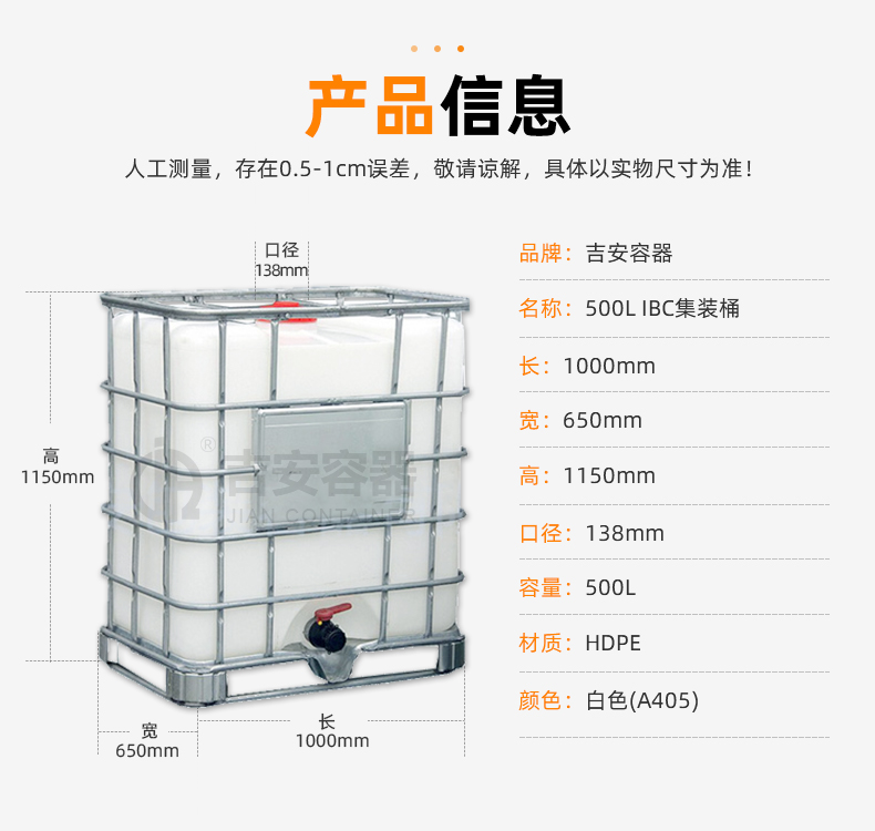 容量:500L | 材質(zhì):內(nèi)膽-HDPE,外框-鍍鋅鋼 |
