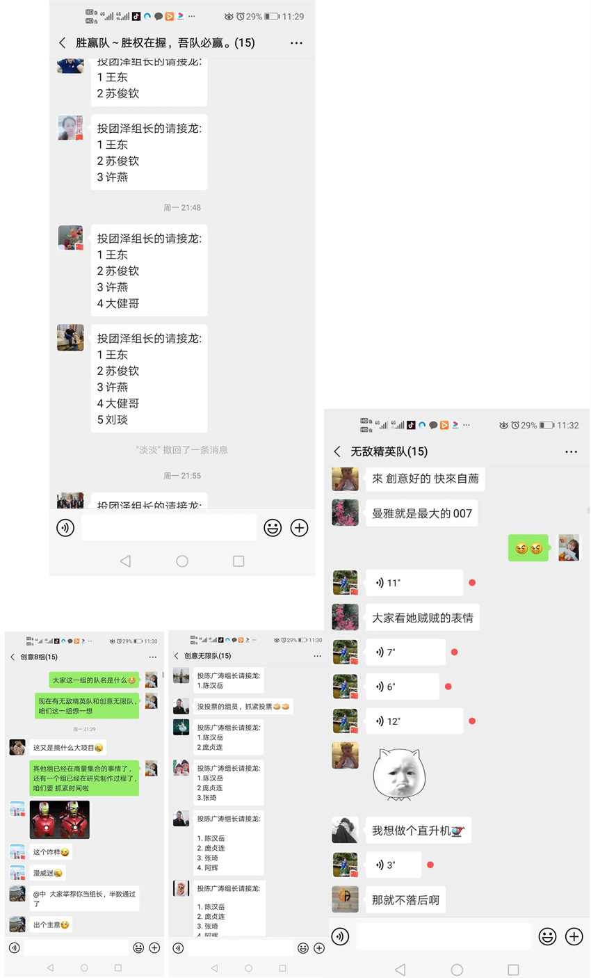 部門主管敲定活動(dòng)細(xì)節(jié)、安排,通過(guò)盲選的方式,分配好四組成員,當(dāng)晚建立活動(dòng)微信群,推選各組組長(zhǎng),并展開如火如荼的線上討論,大家集體出謀劃策,尋找素材,分配任務(wù)、尋找制作視頻,迅速敲定主題,并敲定集體制作時(shí)間。
