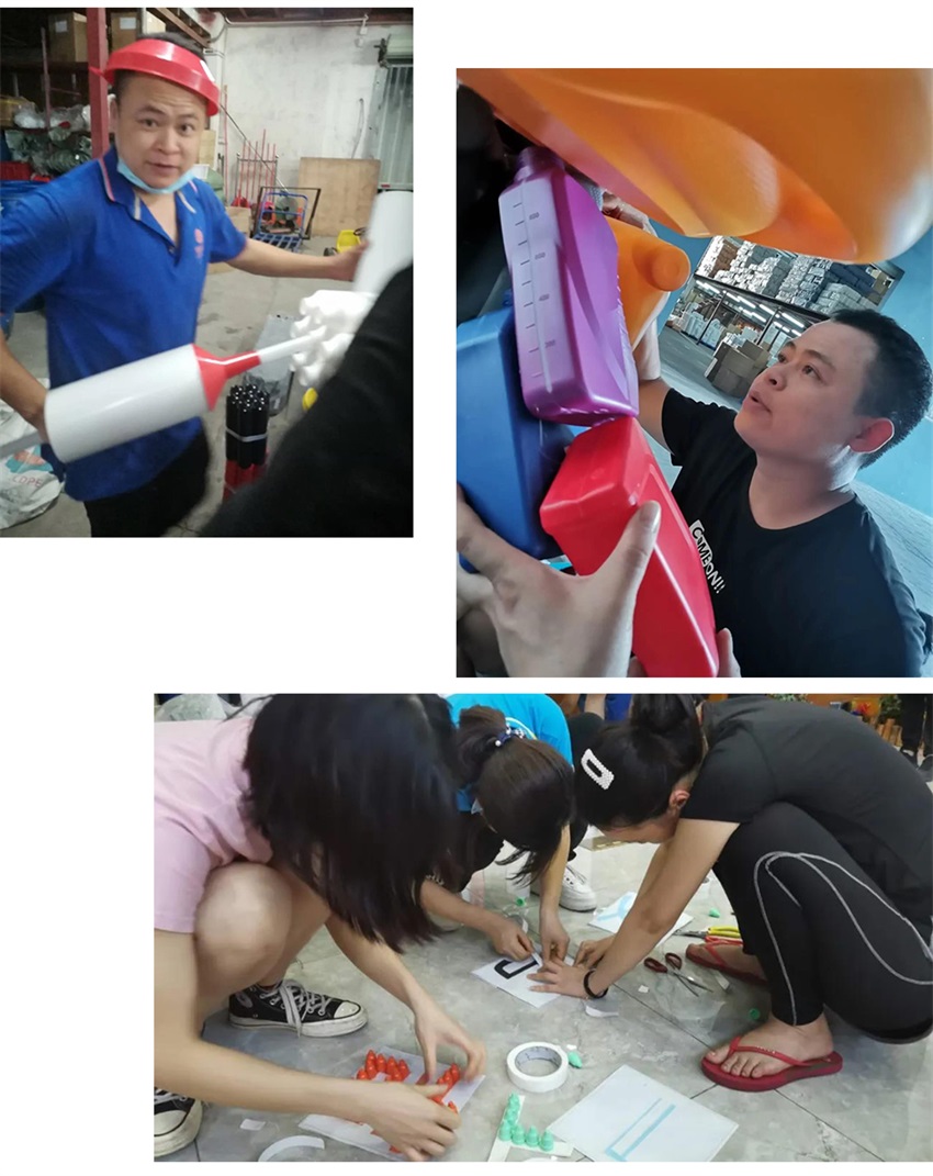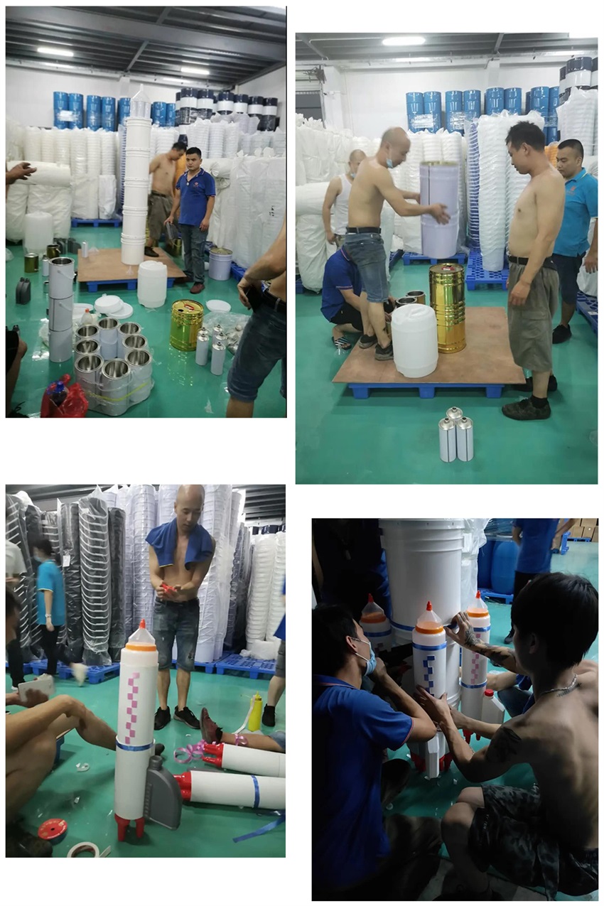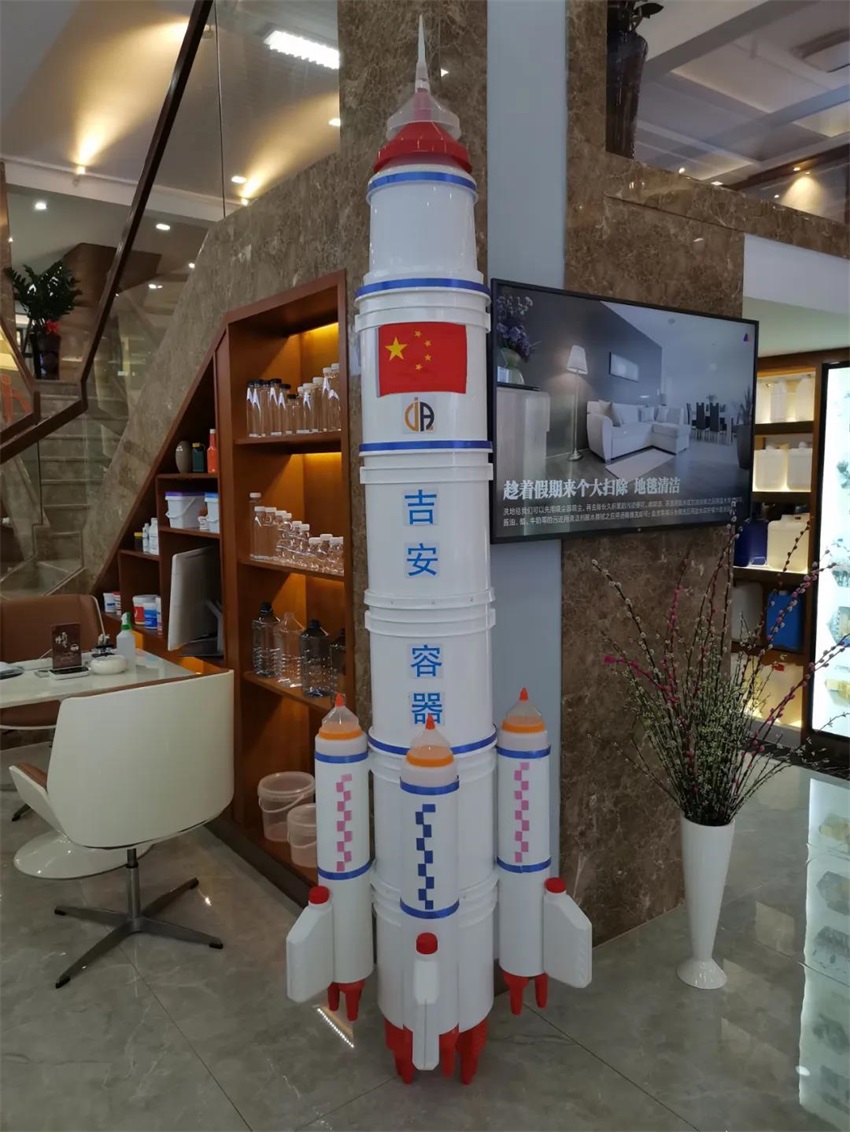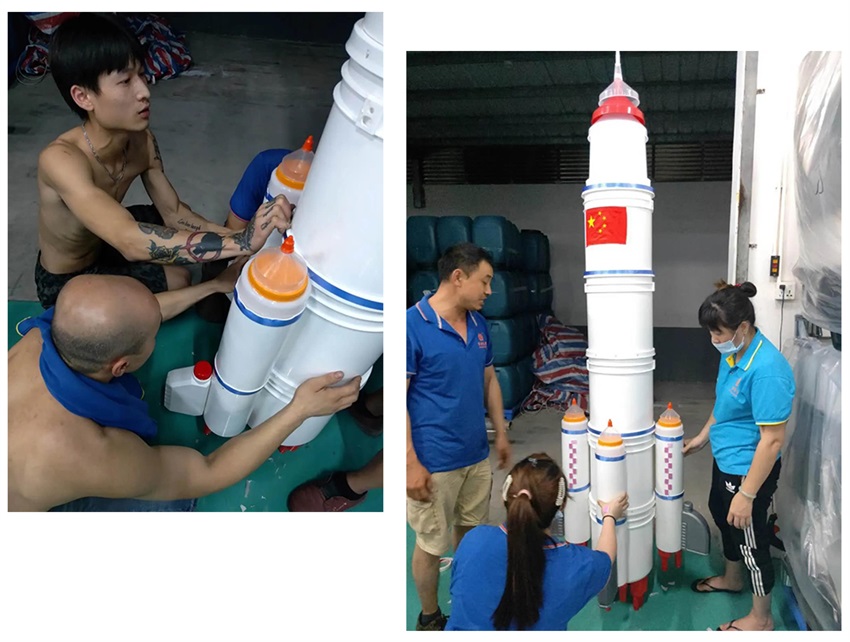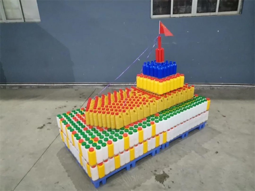 該隊(duì)模型作品”一波三折”,前期討論了多種方案,最終借鑒超市堆碼花式陳列的方式,確定做輪船,用方瓶,圓瓶、機(jī)油瓶系列進(jìn)行輪船的設(shè)計(jì),該作品象征吉安容器未來(lái)將繼續(xù)乘風(fēng)破浪,披荊斬棘,勇往直前,揚(yáng)帆遠(yuǎn)航。