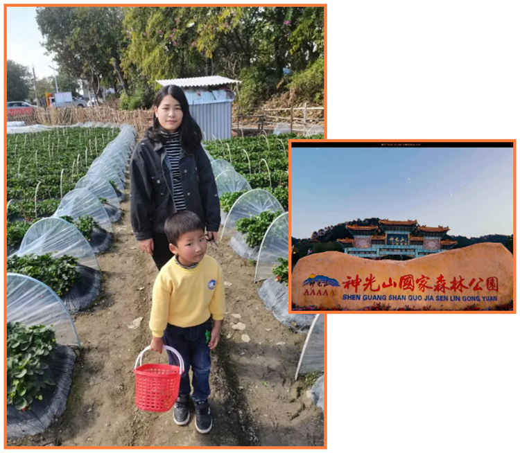 在假期里我首次陪了老人和小孩一起去了“興寧神光山國(guó)家森林公園一日游”,在上山前,我們?nèi)チ瞬葺畧@摘草莓,2個(gè)小孩第一次體驗(yàn)自己動(dòng)手摘草莓的樂趣,非常開心,拉著我不停的說了好多開心的話語(yǔ);雖然我以前也來(lái)過這里玩,當(dāng)時(shí)并沒有感覺到景色有很漂亮,而這次過來(lái)真的很不一樣,一方面是景區(qū)有了進(jìn)一步的升級(jí),另一方面我更覺得,心情,會(huì)讓風(fēng)景有不同的面貌,最美的風(fēng)景不一定是在遠(yuǎn)方,擁有詩(shī)意的心情,生活盡是美景,看到他們幸福的滿足感,是我奮斗的能量,自己也爭(zhēng)取以后能有更多的時(shí)間,陪伴家人,我的幸福,是奮斗出來(lái)的!