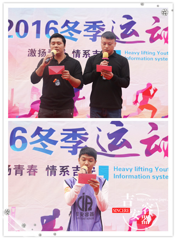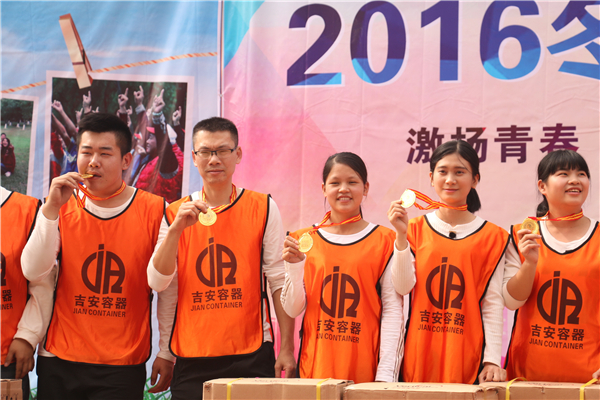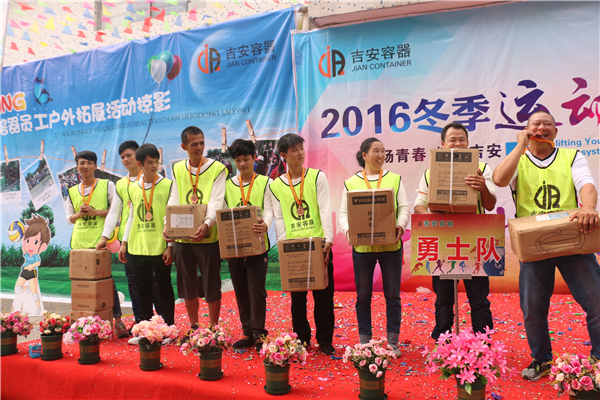 吉安容器2016年冬季運動會在快樂、勵志、緊張、激烈、溫馨、感動中圓滿落下帷幕,每個人都得到了不同的成長,有人說:我好久沒有這樣那么多人一起開心的玩了,有人說:剛才我疊罐子的時候把最后2個罐子放上去看到了萬眾期待的眼神,那一刻我的身上有了一種叫做責任的使命感,有人說:這是我來吉安容器參加的第一次團隊活動,我一開始是認為他應該是沉悶的,現在我發(fā)現它是“你開心就好”的一次活動,有人說:我今天得到了鍋具三件套,這幾年在公司參加的活動把家具都集齊了現在我就差個老婆了... ...我想,每個吉安人都有這樣的感覺吧,我們的每一次活動的目的,出發(fā)點都是快樂,每一個項目的設定,目的都是團結協作,共同進步,每次活動,我們從拼搏中感受團隊的力量,從失敗中感悟細節(jié)的重要,從成功的喜悅中明白原來只有真心付出,才能換來最后一刻的榮耀... ...我堅信,吉安容器在我們這支勇敢、團結、青春的隊伍的努力下,會走得更遠,發(fā)展的更快!