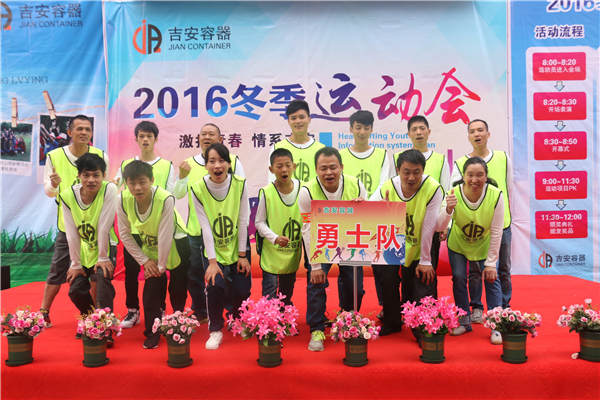 吉安容器2016冬季運動會,在全體員工歷經1個月多時間的籌劃、組織與實施,在12月4日如期舉行,本次運動會更近一步的加強公司文化建設,豐富員工體育文化生活,增強員工體質,提高全體員工的凝聚力,向心力與拼博精神,同時也讓全體員工盡情展現其青春·激情·活力·快樂的另一面。