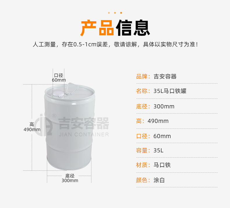 | 品名:35L鐵桶涂白(T220) | |