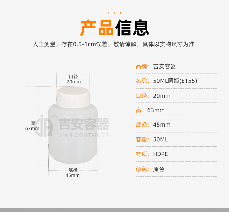 小口塑料瓶采用全新HDPE塑膠原料吹塑而成,具備韌性好、耐酸堿、耐腐蝕、不變形,密封性能佳等特點,可根據(jù)客戶需求定制、改色、產(chǎn)品適用于化工、清洗劑、醫(yī)藥、液體、食品、農(nóng)業(yè)等各行業(yè)包裝。