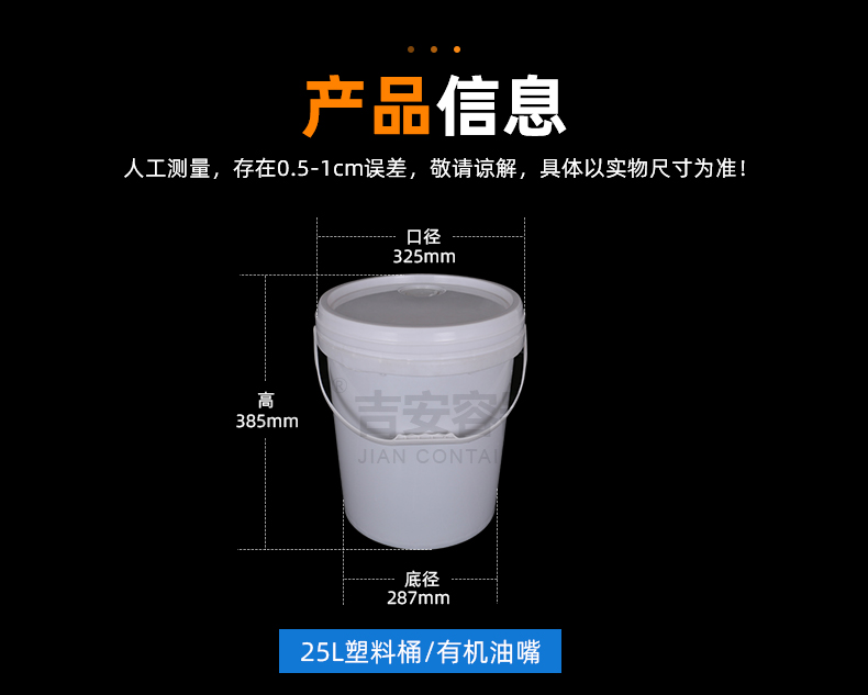 東莞市吉安包裝容器有限公司創(chuàng)立于2000年8月1日,是中國知名品牌企業(yè)。已通過ISO 9001質(zhì)量管理體系資質(zhì)認證,加入了中國中空協(xié)會,并獲得《中國知名品牌》,《國家標準合格產(chǎn)品》,《全國重合同守信用AAA級企業(yè)》,《質(zhì)量.服務.誠信AAA企業(yè)》等榮譽稱號。根據(jù)材質(zhì)的不同,我們的產(chǎn)品分為塑料容器、鐵質(zhì)容器、鋁材容器、玻璃容器、紙質(zhì)容器等五大類。按產(chǎn)品的名稱分為塑料桶、塑料瓶、包裝桶、涂料桶、機油桶、油脂桶、化工罐、膠水瓶、鐵桶、鐵罐、鋁瓶、鋁罐、阻隔瓶、高阻隔瓶等,容量從3ML至1000L多種規(guī)格,多種款式。適合包裝的產(chǎn)品包括:化學試劑、化工原料、化工助劑、飼料添加劑、油墨、油漆、樹脂農(nóng)藥、日用化學品、聚氨脂、膠粘劑,廣泛應用于化工、建筑、食品、醫(yī)療、生物等各領(lǐng)域。