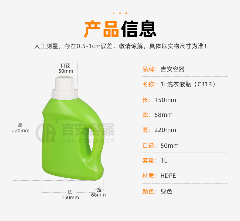 • 產(chǎn)品名稱:1L綠色洗衣液瓶(C313)