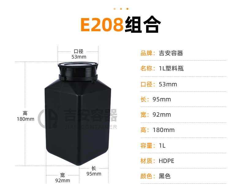 | 品名:1L黑色方塑料瓶(E208) | |