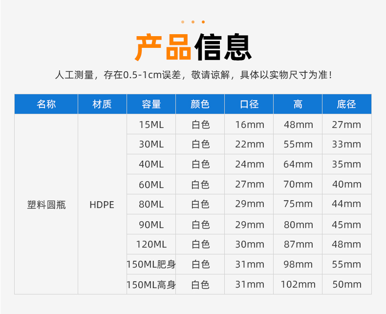 品名:15ml~60ml塑料瓶(E107)