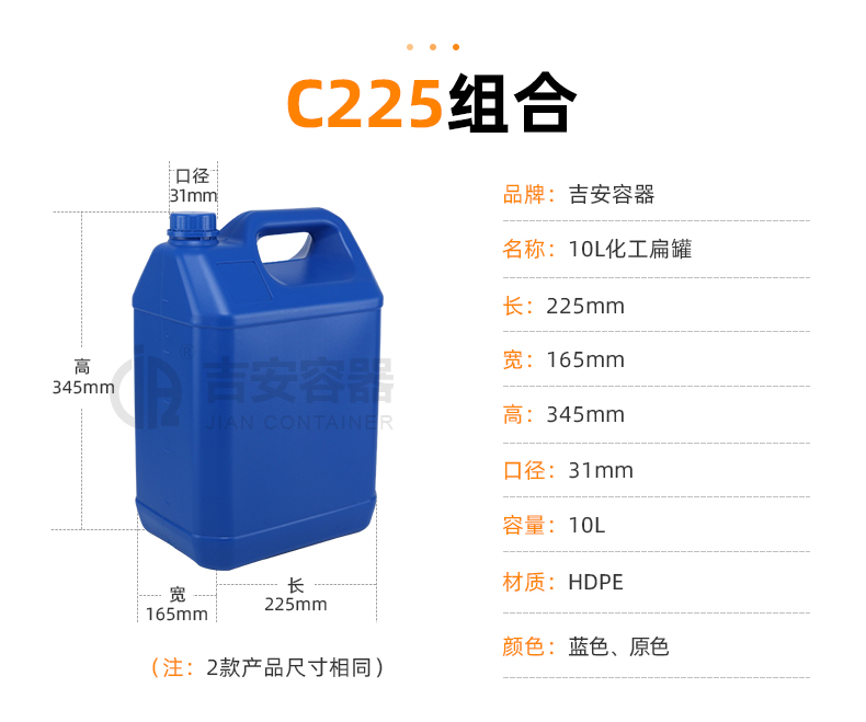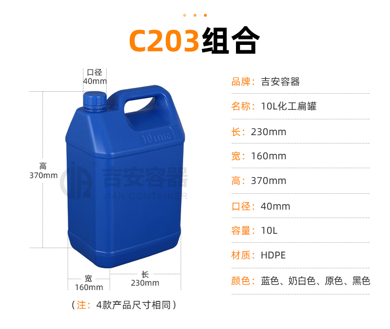 東莞市吉安包裝容器有限公司創(chuàng)立于2000年8月1日,是中國知名品牌企業(yè)。已通過ISO 9001質(zhì)量管理體系資質(zhì)認證,加入了中國中空協(xié)會,并獲得《中國知名品牌》,《國家標準合格產(chǎn)品》,《全國重合同守信用AAA級企業(yè)》,《質(zhì)量.服務.誠信AAA企業(yè)》等榮譽稱號。根據(jù)材質(zhì)的不同,我們的產(chǎn)品分為塑料容器、鐵質(zhì)容器、鋁材容器、玻璃容器、紙質(zhì)容器等五大類。按產(chǎn)品的名稱分為塑料桶、塑料瓶、包裝桶、涂料桶、機油桶、油脂桶、化工罐、膠水瓶、鐵桶、鐵罐、鋁瓶、鋁罐、阻隔瓶、高阻隔瓶等,容量從3ML至1000L多種規(guī)格,多種款式。適合包裝的產(chǎn)品包括:化學試劑、化工原料、化工助劑、飼料添加劑、油墨、油漆、樹脂農(nóng)藥、日用化學品、聚氨脂、膠粘劑,廣泛應用于化工、建筑、食品、醫(yī)療、生物等各領(lǐng)域。
