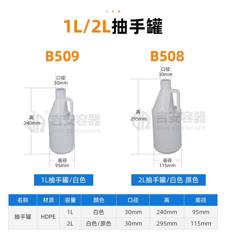 東莞市吉安包裝容器有限公司創(chuàng)立于2000年8月1日,是中國知名品牌企業(yè)。已通過ISO 9001質(zhì)量管理體系資質(zhì)認證,加入了中國中空協(xié)會,并獲得《中國知名品牌》,《國家標準合格產(chǎn)品》,《全國重合同守信用AAA級企業(yè)》,《質(zhì)量.服務.誠信AAA企業(yè)》等榮譽稱號。根據(jù)材質(zhì)的不同,我們的產(chǎn)品分為塑料容器、鐵質(zhì)容器、鋁材容器、玻璃容器、紙質(zhì)容器等五大類。按產(chǎn)品的名稱分為塑料桶、塑料瓶、包裝桶、涂料桶、機油桶、油脂桶、化工罐、膠水瓶、鐵桶、鐵罐、鋁瓶、鋁罐、阻隔瓶、高阻隔瓶等,容量從3ML至1000L多種規(guī)格,多種款式。適合包裝的產(chǎn)品包括:化學試劑、化工原料、化工助劑、飼料添加劑、油墨、油漆、樹脂農(nóng)藥、日用化學品、聚氨脂、膠粘劑,廣泛應用于化工、建筑、食品、醫(yī)療、生物等各領域。