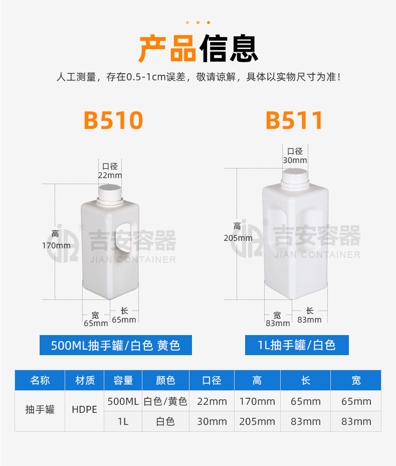 容量:500ml 材質(zhì):罐蓋-PP,罐身-HDPE