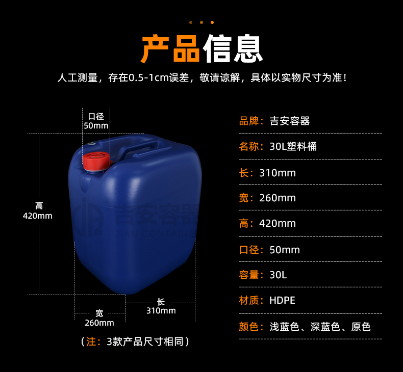 小口塑料桶:采用全新聚乙烯原料吹塑工藝制作而成,具有耐腐蝕,耐酸堿特性,小口設計密封性能強,廣泛應用于化工、清潔、食品、添加劑、汽車等各行業(yè)液體包裝。