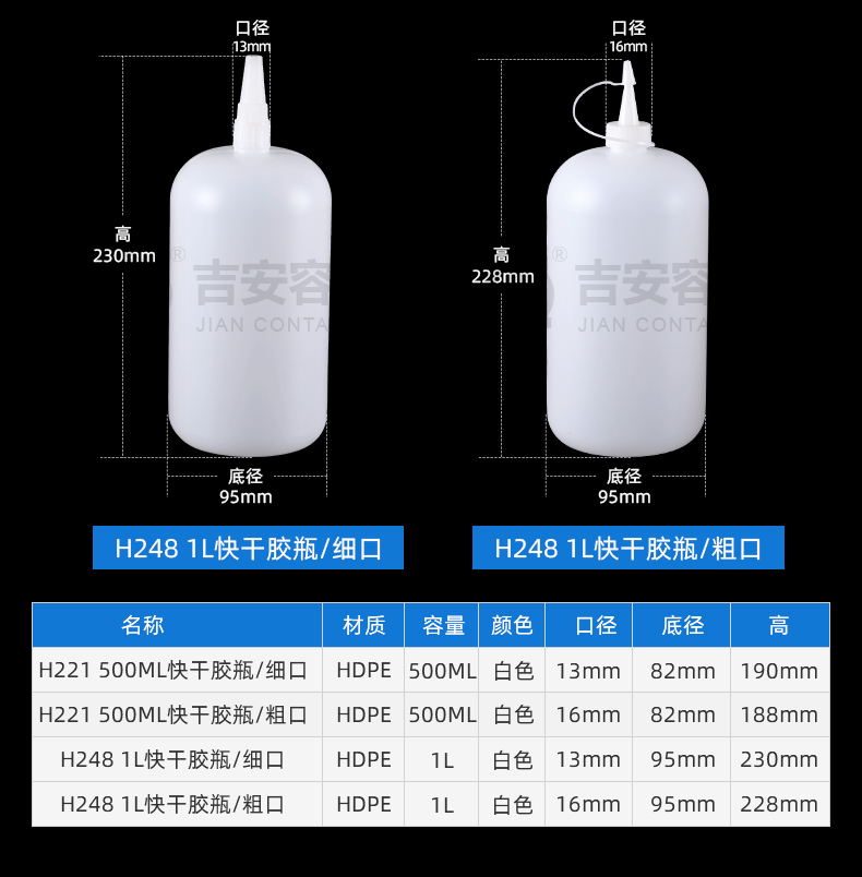 尖嘴瓶適用行業(yè)廣泛,多用于膠水包裝、眼藥水包裝、食品調(diào)料包裝,因其尖嘴特點(diǎn),具備方便滴膠,操作時(shí)流量可控可調(diào),使用方便。