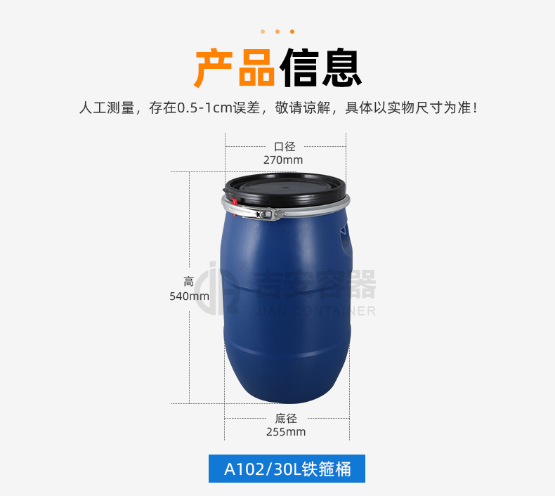 | 品名:30L鐵箍塑料桶(A102) | |
