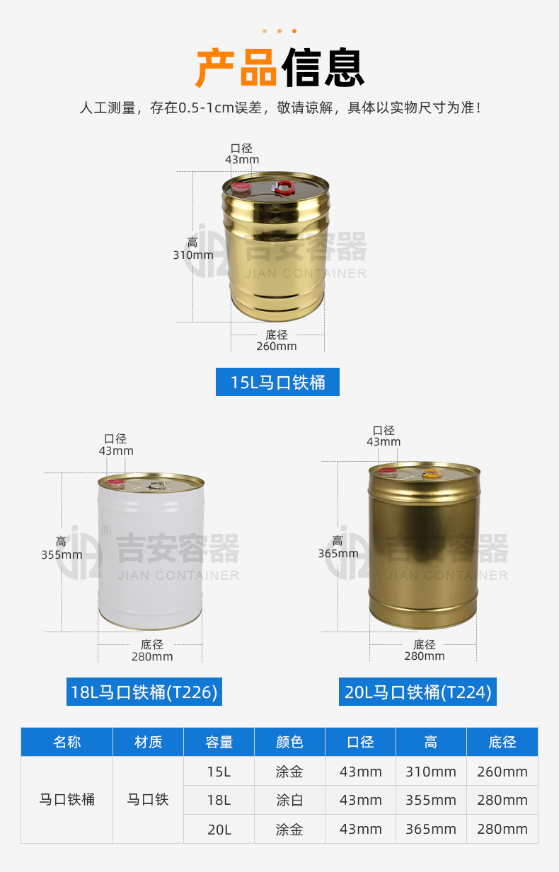 鐵罐,鐵桶產(chǎn)品采用馬口鐵制作而成,適用于化工、膠粘劑、水性油漆等行業(yè)包裝,表面可加涂白,涂金,防止生銹,外形精美,可根據(jù)要求定制高度及印刷圖案。